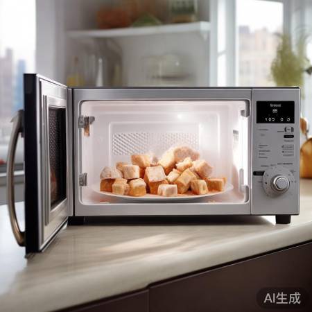 第四个方法,适合那些不想等太久的食品。你可以把冷冻食品切成小块,然后放在微波炉里解冻。这就像用微波炉快速加热食物,方便快捷。不过,要注意微波炉解冻时间较短,容易让食品内部和外部的温度不均匀。