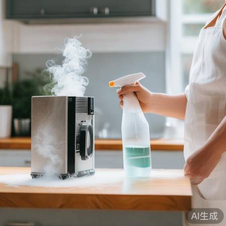 第三步,对于烟机上的油渍,我们可以用白醋来清洁。将白醋稀释后,用喷雾瓶喷在油渍上,等待几分钟,再用湿布擦拭干净。白醋不仅可以去除油渍,还能消毒杀菌,一举两得。